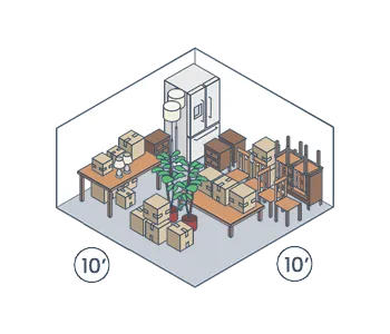 While the size requirements for storing personal belongings may vary depending on the items being stored and the renter’s organization skills, the guide below can be used as a starting point to help determine the appropriate storage size.