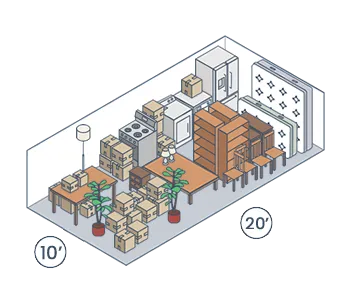 Our 10×20 storage units, offering 200 square feet of space, are ideal if you’re transitioning between homes, preparing your house for sale, or undertaking a major renovation. Comparable to a small garage, these units can easily hold the belongings of a three- or four-bedroom house.